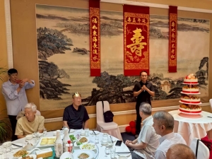 公司總經(jīng)理夏炎為魏老壽宴致辭